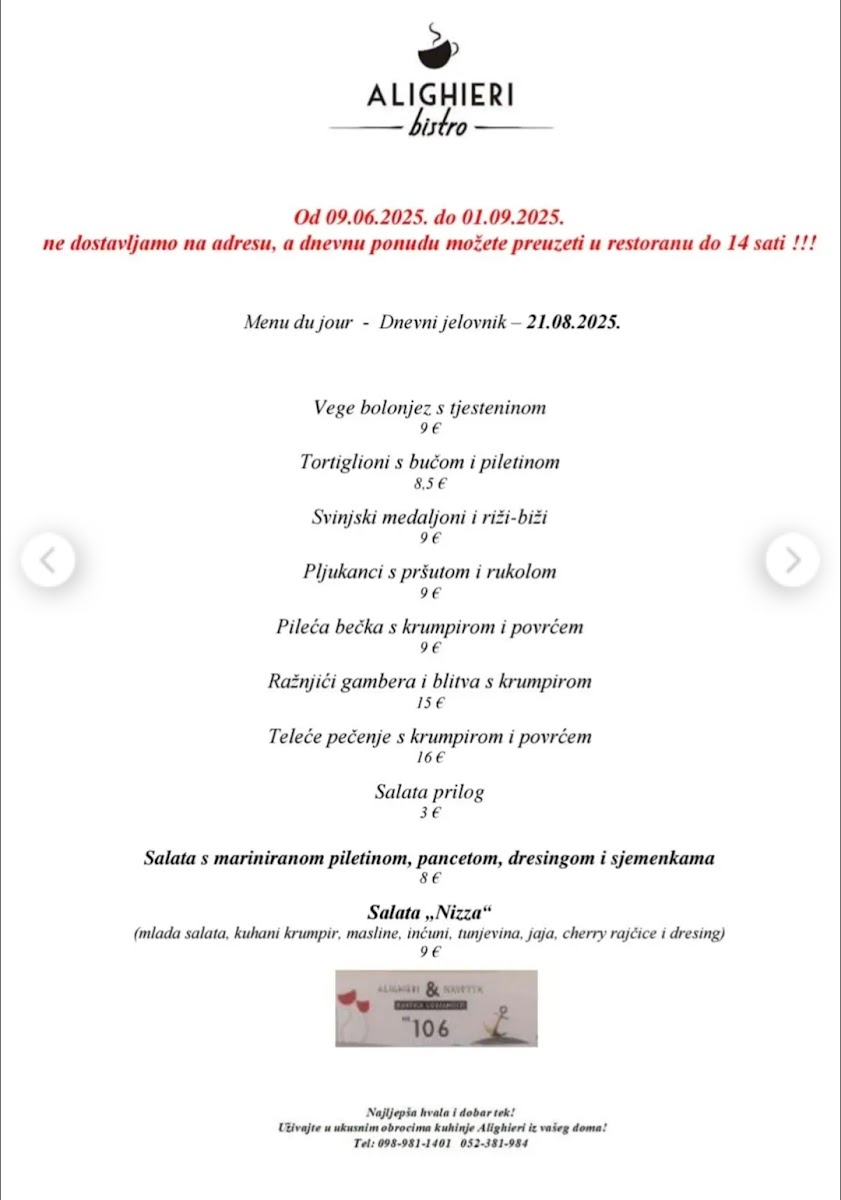 The bistro’s inviting ambiance, whether indoors or al fresco near the fountain, enhances the dining experience. Patrons consistently commend the attentive service, making every visit not just a meal, but a memorable occasion. Bistro Alighieri promises a blend of mouthwatering dishes and warm hospitality, ensuring your time in Pula is truly extraordinary.